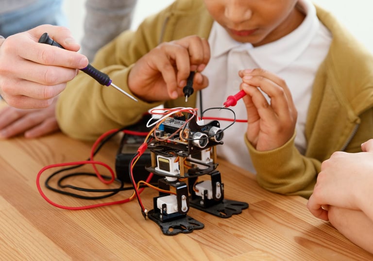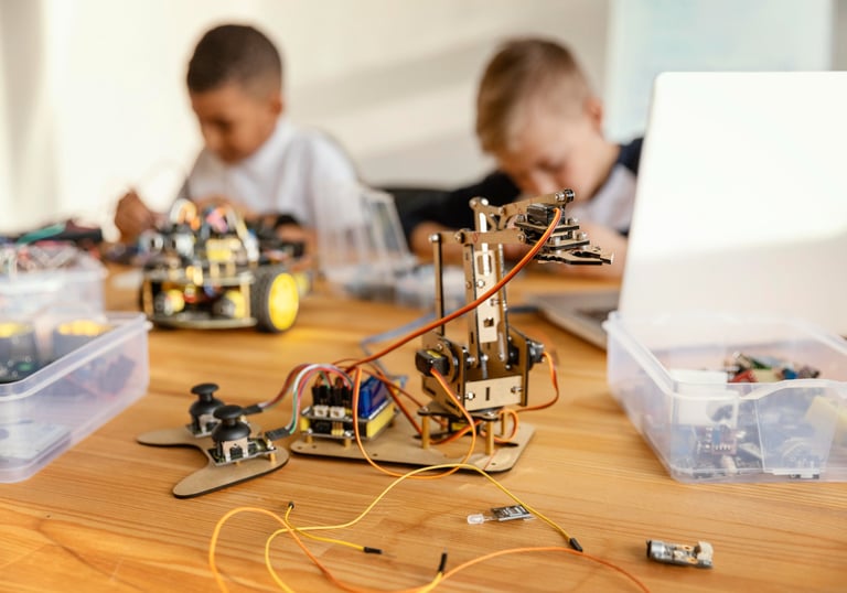 Students learn how to connect sensors, motors, and displays, write basic code, and build interactive projects like automated lights or smart systems. It combines practical electronics, logical thinking, and creativity to prepare learners for real-world tech applications.